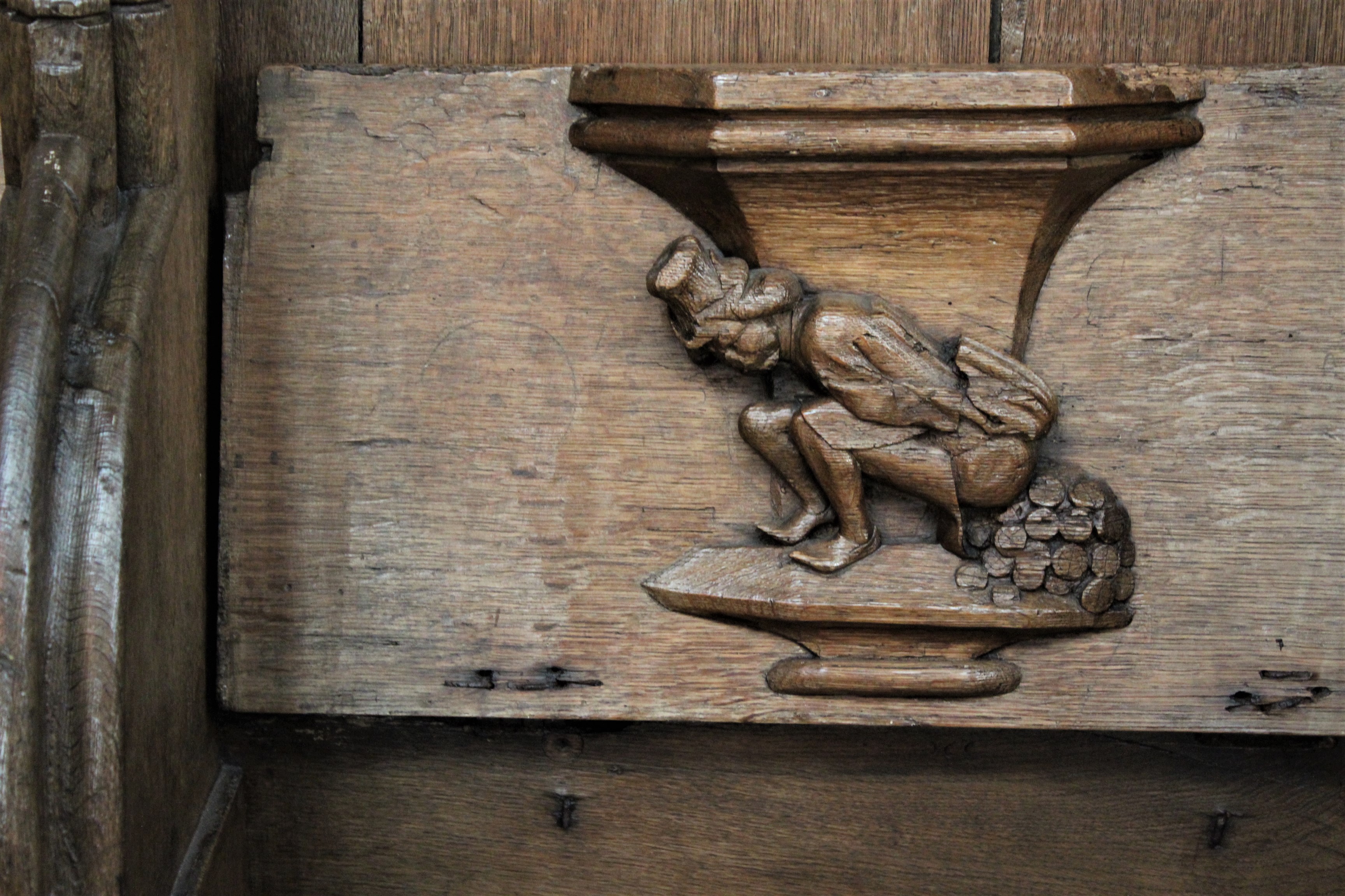 Previous Image 2AmsterdamMisery Old Dutch saying depicted on a misericord in Oude Kerk: You can’t poop money.