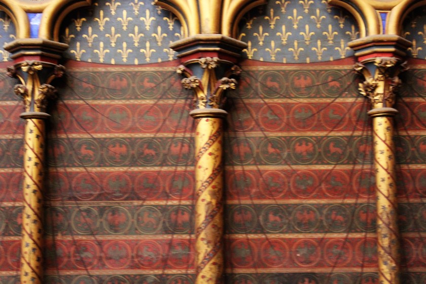 Sainte-Chapelle is highly decorated ceiling, walls and floors.