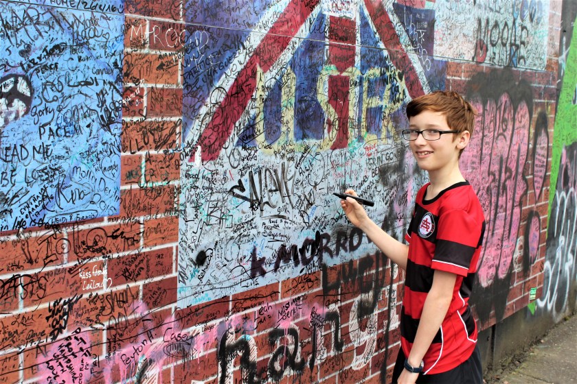 Writing on the peace wall is encouraged.