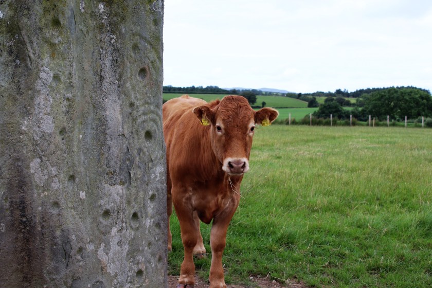 Next Image Stone.Single A bullock looks protectively from the side of the Ardmore Gallan Standing Stone, located a kilometer from the County Donegal town of Muff.