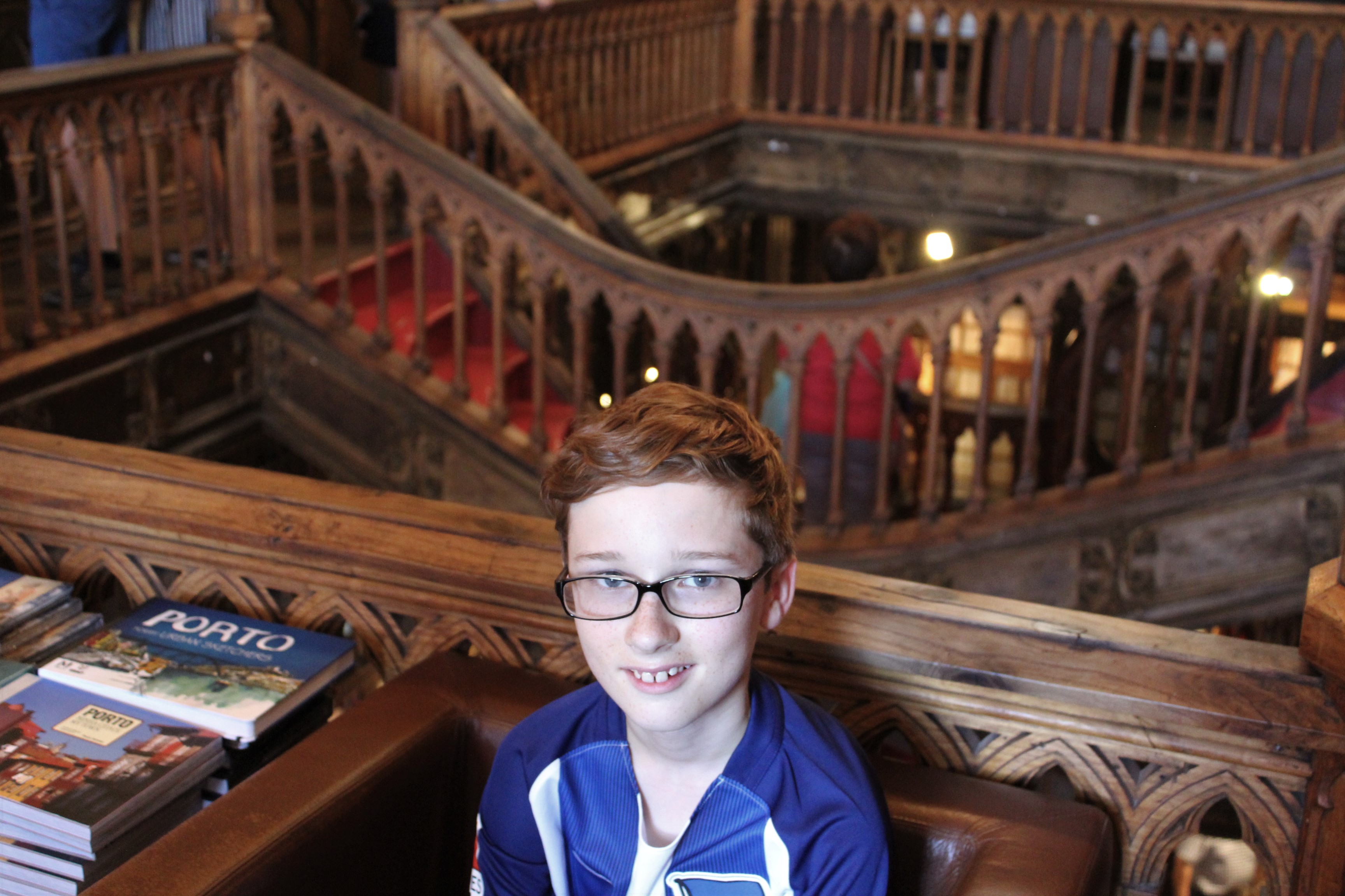Declan poses in the bookstore.