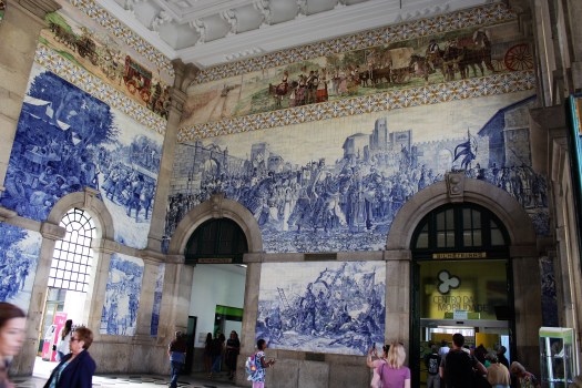 Previous Image porto2.train The São Bento Train Station is an attraction onto itself, with 20,000 azulejos tiles in the entrance hall showing scenes from Portuguese history.