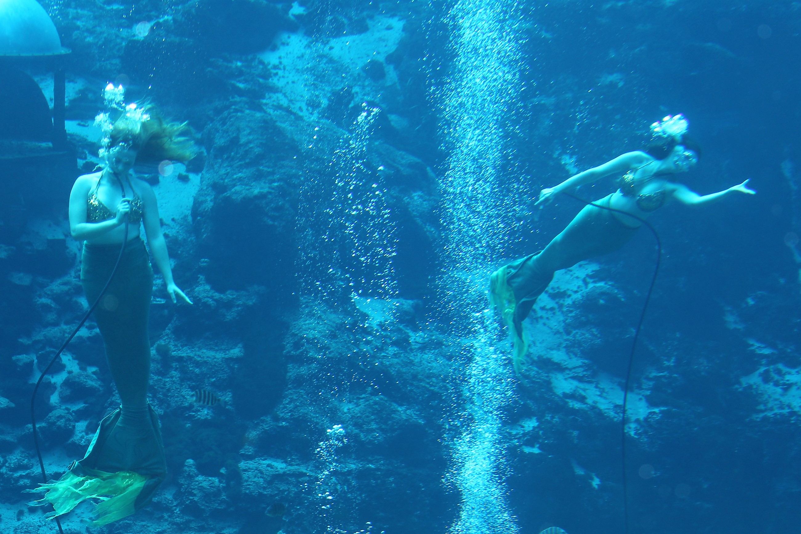 Previous Image Hitting the pipe Mermaids frolic (and get an air fix) at Weeki Wachee Springs. Mermaids frolic (and get an air fix) at Weeki Wachee Springs.