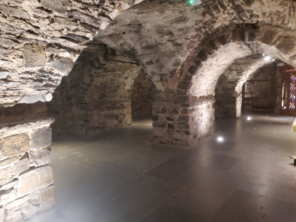Our first stop is Christ Church Cathedral, an Anglican church that can trace its origins back nearly 1,000 years to the Vikings. In addition to the impressive vaulted ceilings and stained-glass windows, you’ll find cool medieval floor tiles. But the main feature is the crypt, reportedly the longest in Britain or Ireland. Dim lighting sets the mood as you walk beneath the curved arches and admire the artifacts and church bling from over the years.